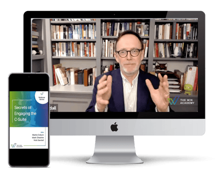 Watch The Win Academy’s managing director Martin Coburn and C-Suite Specialists, Mark Cheshire and Nick Sandall, as they reveal what sales professionals and teams need to focus on in order to engage at the C-level and win bigger, more transformational deals higher up the value chain.
